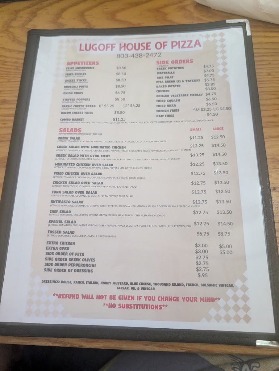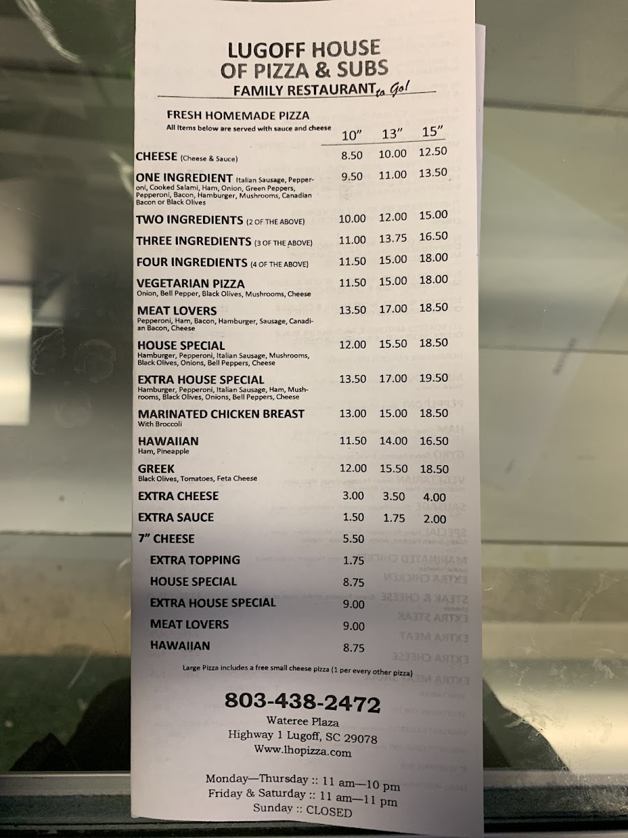 Lugoff House of Pizza & Subs Menu