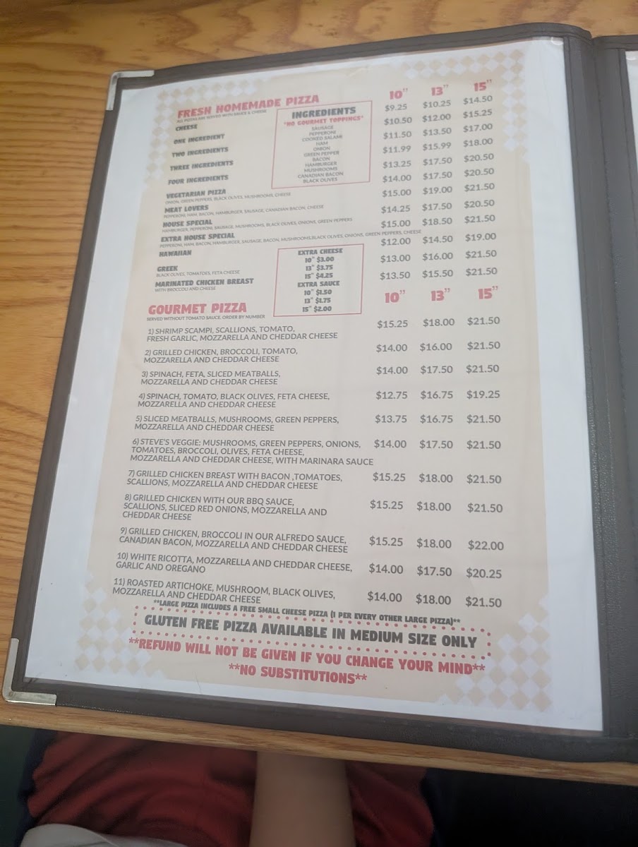 The menu at Lugoff House of Pizza & Subs offers a variety of options primarily centered around classic American and Greek-inspired dishes. Patrons can find a diverse selection of pizzas ranging from traditional cheese and sausage pizzas to specialty options like the House Special Pizza and Half Pineapple Everything Pizza. Subs and sandwiches are also featured prominently, including choices such as the Super Sub, Steak and Cheese Sub, Hot Ham Sub with Fries, and Gyro with Fries.